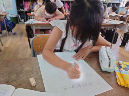 3年生は国語の学習でした。ローマ字でaiueoを書いていました。