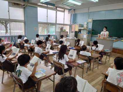 一年生が国語で音読をしていました。長い文でしたが声を合わせてみんなで読んでしました。