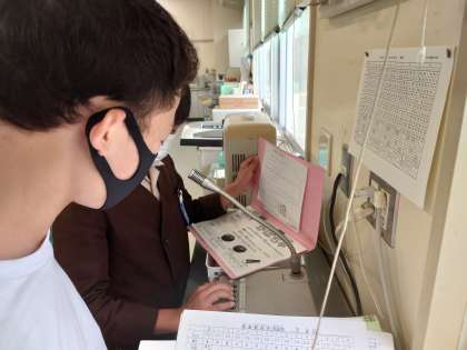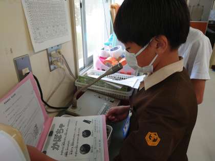 お昼になると委員会の子どもたちが今日の献立を放送します。毎日しっかりと伝えています。