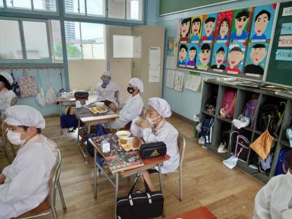 みかんは低学年も食べやすいように、スマイルカットされています。