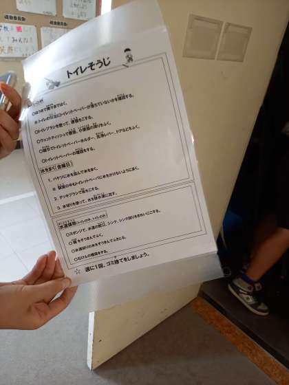 環境委員会では、誰もがきれいにそうじできるように、自分たちでシミュレーションし、写真入りのそうじ手順カードを作成してくれました。今回は図書室やトイレ、音楽室を調べてくれました。