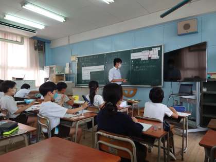 四年生が算数をしていました。今日は他の先生も参観に来て授業を見ました。四年生しっかり考えることができていました。