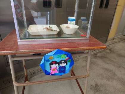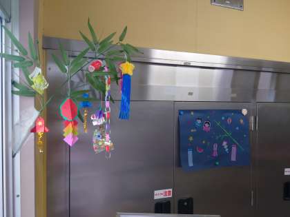 今日は七夕ということで7月から見本の掲示付近に飾りをつけています。