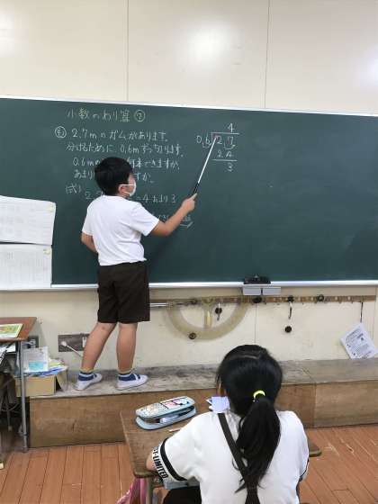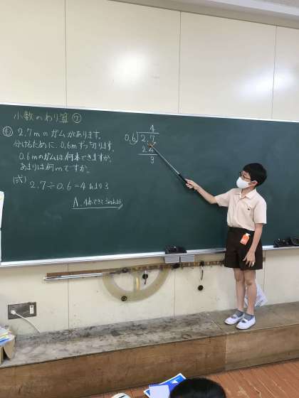 ひっ算を使って、あまりがどうやったら0.3になることを説明できるかを必死に考え、一生懸命説明する姿が見られました。