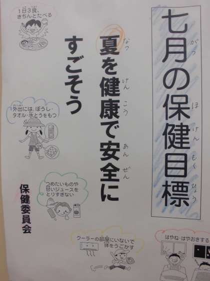 今月の保健目標は「夏を健康で安全にすごそう」です。