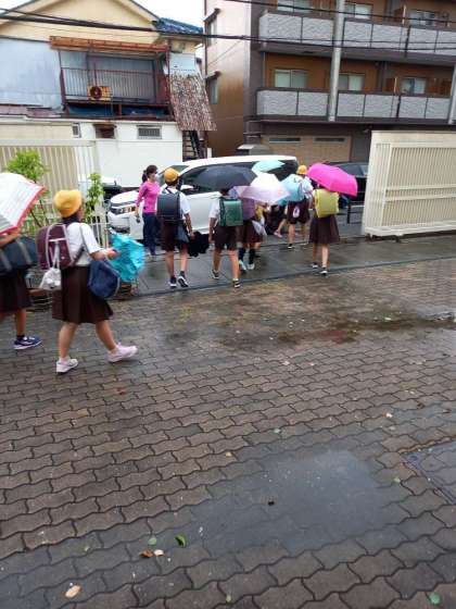 児童の下校前からすごい雷雨でしたね。お迎えに来れた児童は、保護者と一緒に下校しました。その他の児童は講堂で静かに待機していました。雨が止んだので、全員下校できました。保護者の皆様ご協力ありがとうございました。