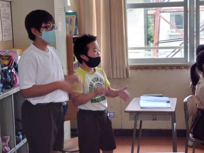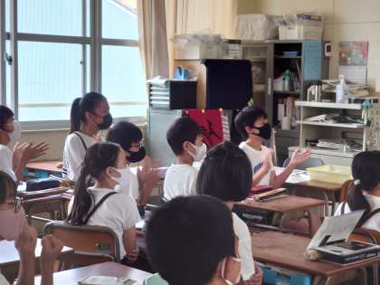 6年生が音楽をしていました。画面を見ながら手拍子を打っていました。学年によって難易度が違うようです。
