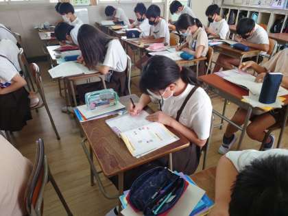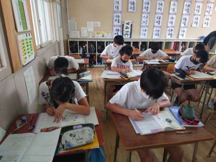 6年生は算数を学習していました。一学期もあとわずかなので、比のまとめをしていました。