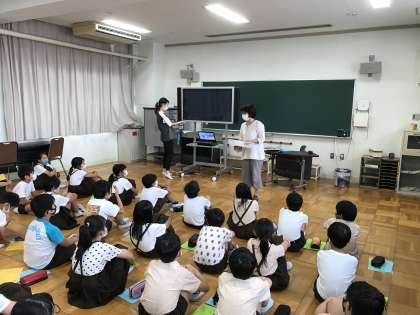 養護教諭から、体調管理についての説明を行い、その後、担任から、内容について説明しました。