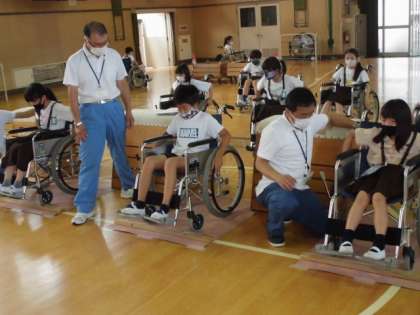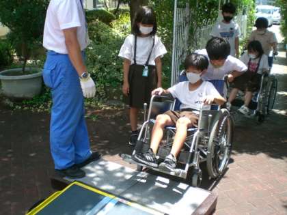 車いすに乗っている人が安心できるように工夫する姿が見られました。