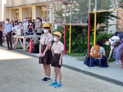 晴天に恵まれ本日より5年生が林間学習にハチ高原ヘ出発します。