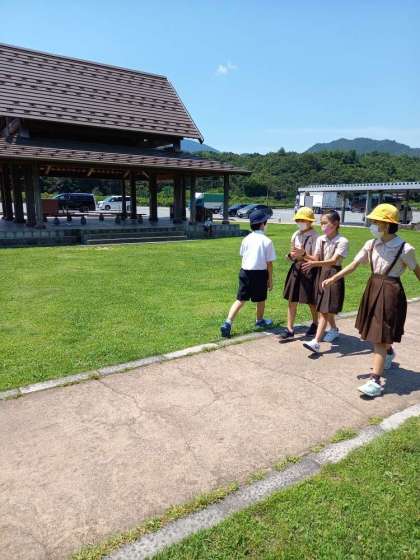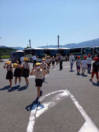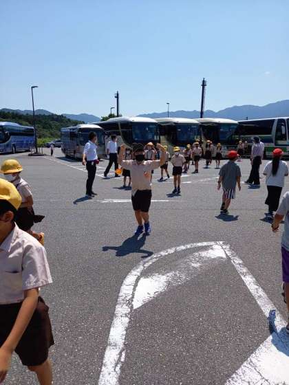 バスは、まほろばSAに到着しました。全員元気ですよ。