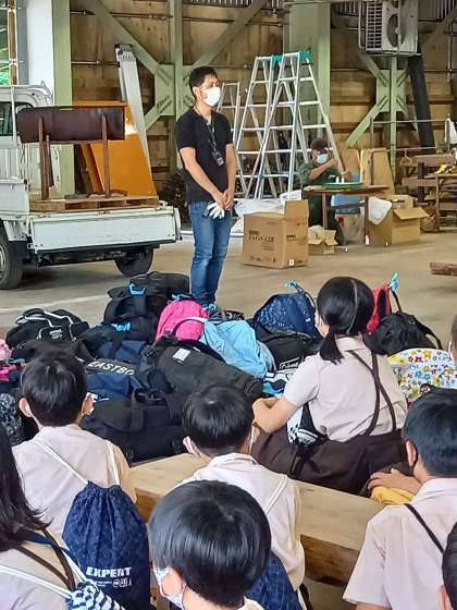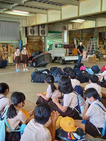 到着してすぐに開舎式を行いました。児童代表のあいさつは大きな声でしっかり発表できました。みんな立派な態度で聞いていました。