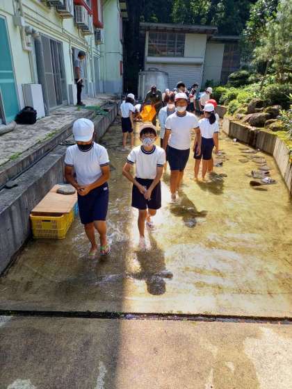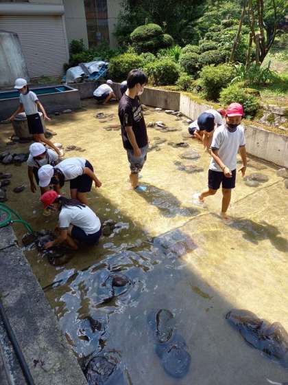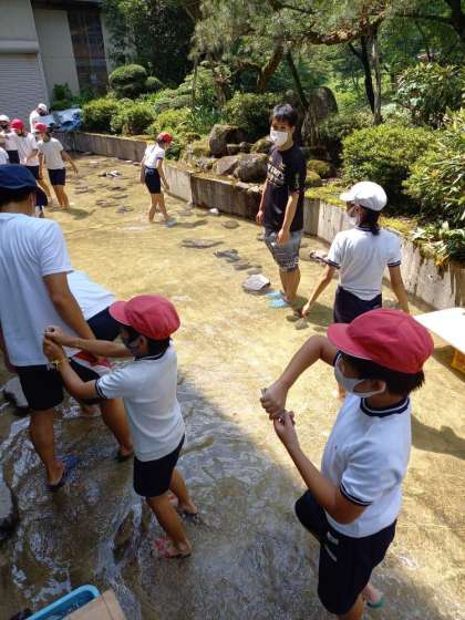 いよいよ魚つかみです。みんなこわごわ捕まえています。