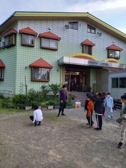 おはようございます。天気は晴れ気温22度です。涼しい風が吹いています。子どもたちは朝のつどいに集まってきました。