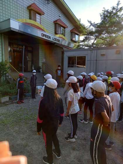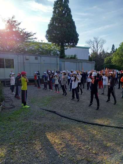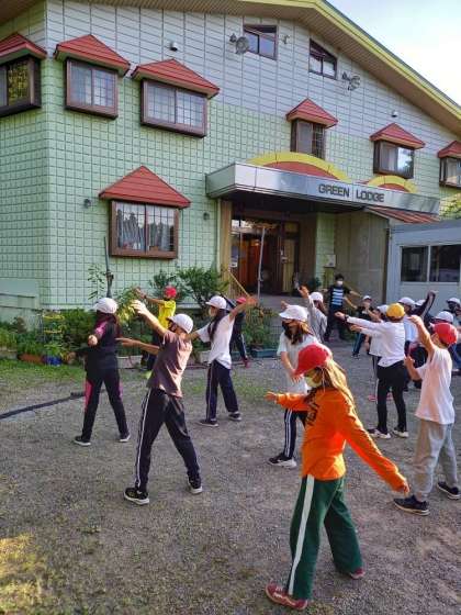おはようございます。最終日天気は晴れ、気温22度です。昨日体調を崩した児童も朝のつどいに参加でき、全員元気です。