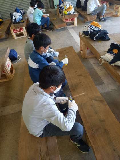 いよいよ最後の行事のはし作りです。宿舎の方から説明を聞き、作業開始。さてどんなはしができるでしょうか?