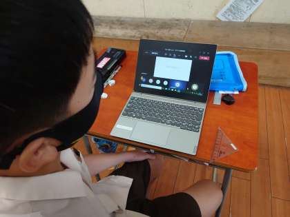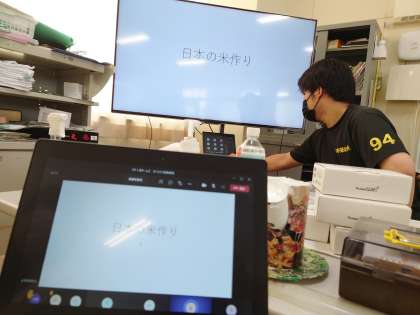 5年生でTeamsを使って社会の学習でプレゼンを送って見ていました。
