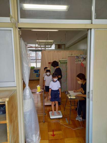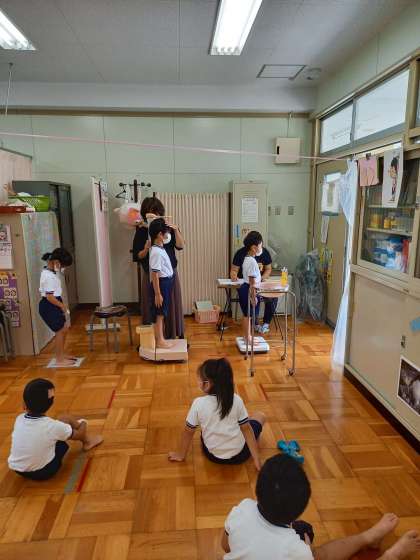 先ほど教室で高橋先生のお話を聞いた後、保健室で発育測定をしました。1学期よりも平均して身長は、3〜4cm伸びていましたよ。