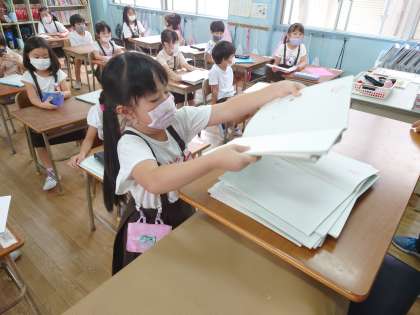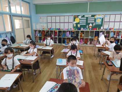 一年生4時間目は連絡帳を書いたり、下の本を配ったりしていました。国語、算数、生活、図工の4冊です。