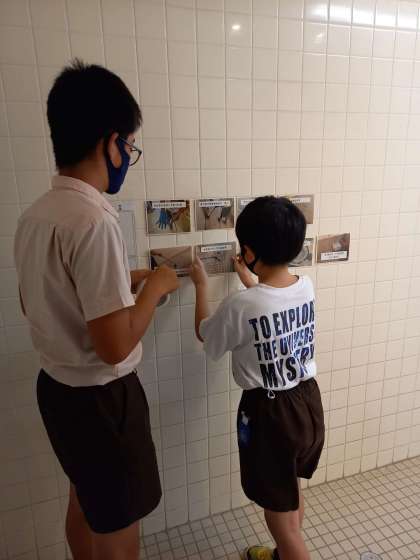 環境委員会では、1学期に作成したトイレの掃除手順を修理したり、新たに理科室などの掃除手順を考えていました。