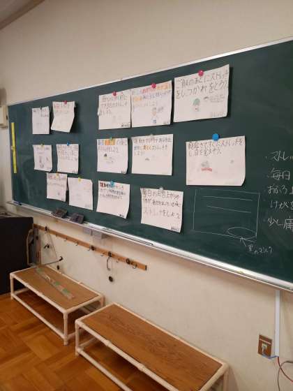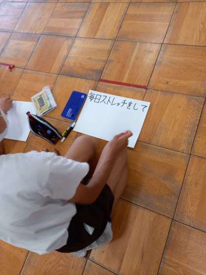 体育委員会では、雨が降っているので体育倉庫の掃除ができず、ストレッチ推奨ポスターを作りました。