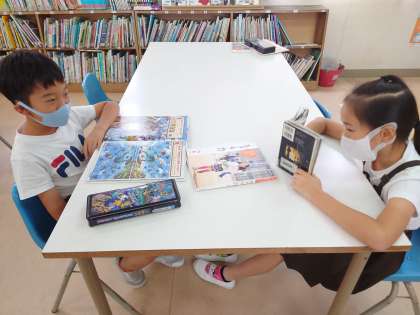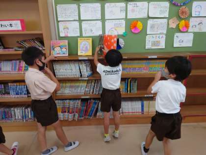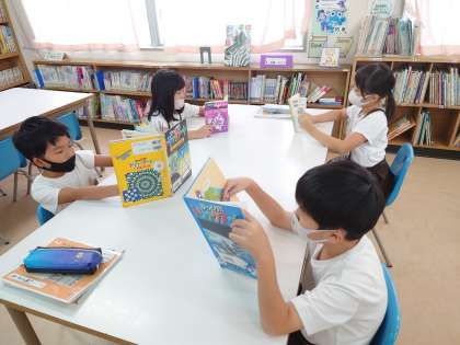 2時間目、図書室をのぞくと2年生が本を静かに読んでいました。