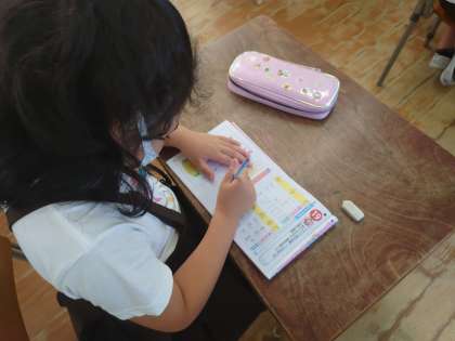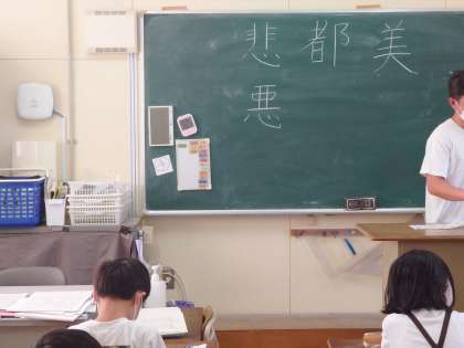 3年生でも漢字を学習していました。こちらは美、都、悲、悪を書いていました。3年生になると画数も多くなり、難しい漢字が多いです。