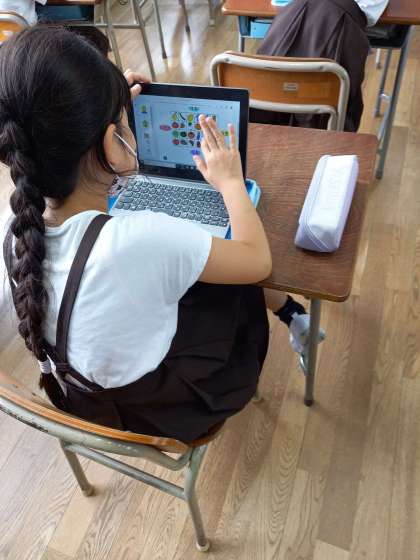 2年では、先日学習したデジタルドリルで学習していました。問題が解けるとコインが貯まるので、楽しく取り組んでいました。