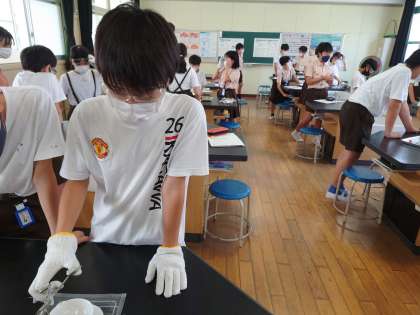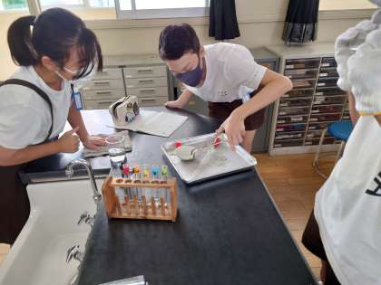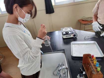 6年生が理科の実験をしていました。色々な水溶液を蒸発させてその結果から仲間わけをしていました。