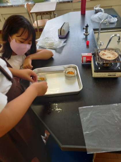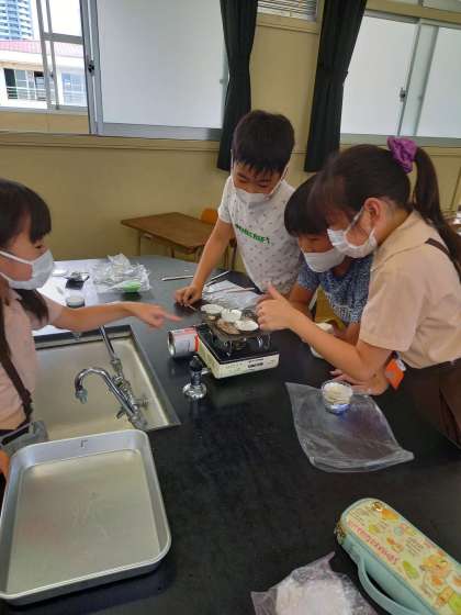 今日は、べっこう飴を作ります。砂糖を水で溶かし作ります。