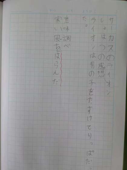3年生が国語を学習していました。サーカスのライオンで、初発の感想を書いていました。