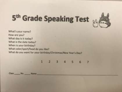 5年生では、初めて、15日(水)にスピーキングテストを行います。