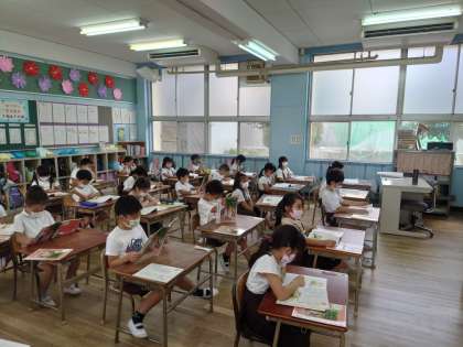 1年生が道徳をしていました。橋の上のオオカミという題材です。