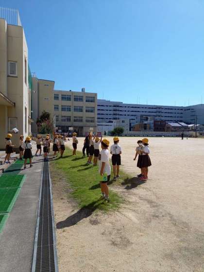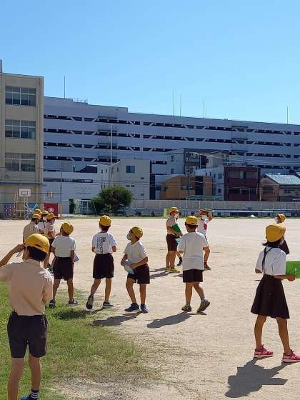 運動場を見てみると、何やら4年生が空を見上げています。聞いてみると、昼間でも月が見えることがあるので、今日は天気も良いので月を探しているということでした。残念ながら、あまりにも天気が良すぎたのか、見つけることができませんでした。がっかりして教室へ帰っていきました。