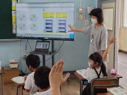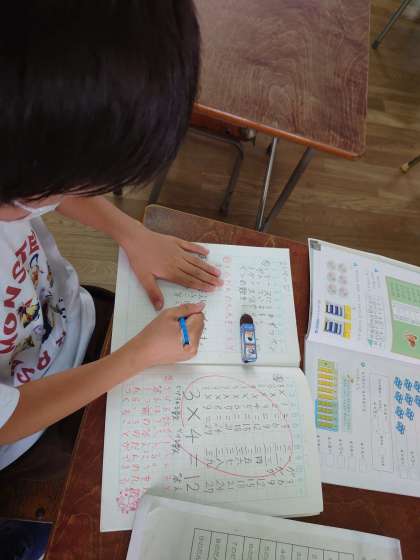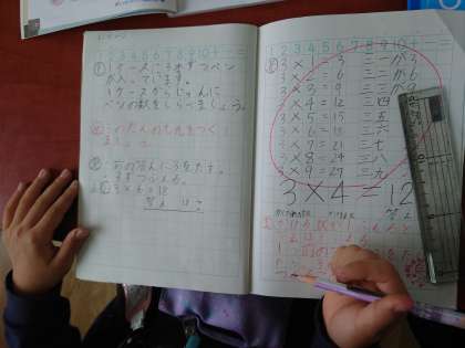 2年生おとなりは算数をしていました。3の段の九九を学習していました。