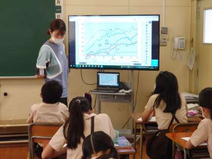 5年生は社会をしていました。食糧生産について輸入量や価格変化を考えながら学習していました。