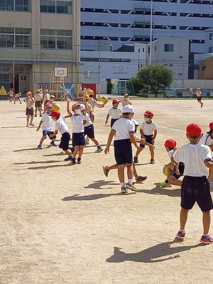 今日も天気がよく子ども達は休み時間、外で遊んでいます。今日から鬼ごっこもできるようにしました。