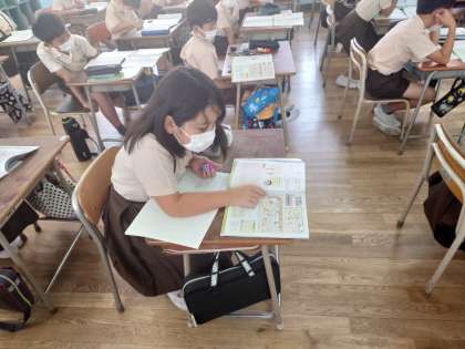 3年生が社会をしていました。スーパーマーケットについて学習していました。