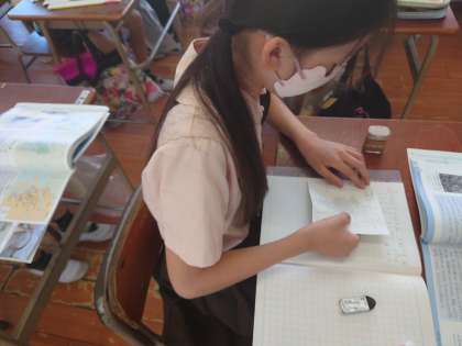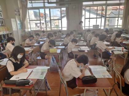 4年生が社会をしていました。台風被害について学習していました。