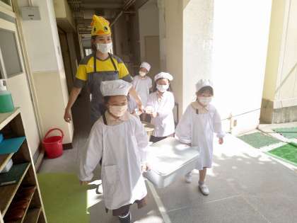 給食を運んでいます。