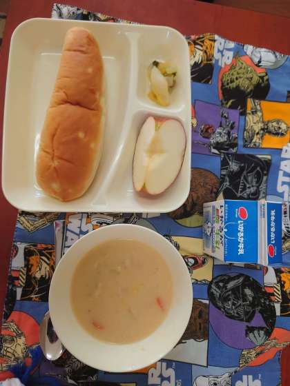 1、2年生のりんごは4分の1をさらに半分にして食べやすくしています。