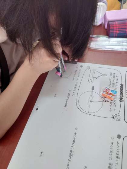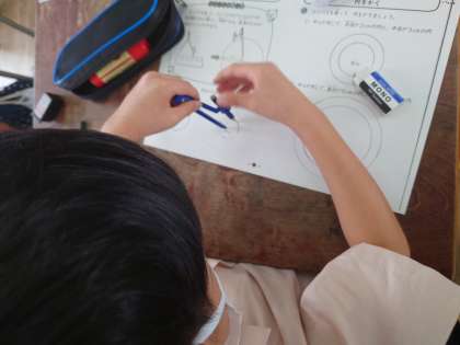 3年生がコンパスを使っていました。かなり苦戦しているようですが、何度も繰り返しすることでコツをつかんでいきます。頑張ってくださいね。