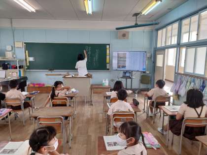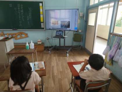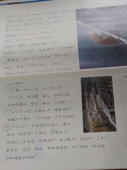 2年生が国語をしていました。ビーバーの大工事の学習です。説明文の学習です。