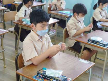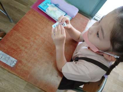 1年生、たしざんカードで繰り上がりの計算を何度もしていました。