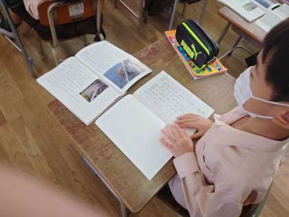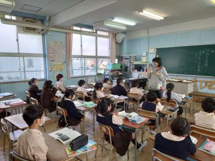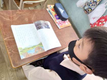 2年生は国語をしていました。ビーバーの大工事の学習です。