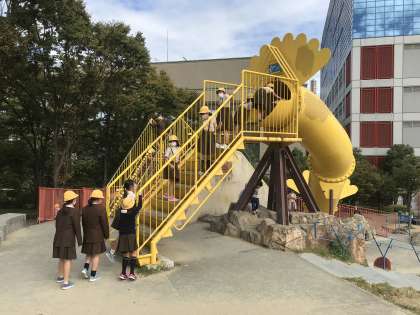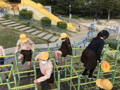 1組は、扇町公園でお弁当を美味しくいただいた後、遊具で遊んでいます。