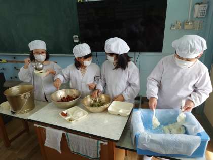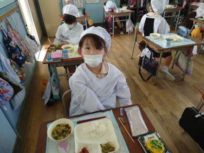 今日はマグロのオーロラ煮が人気があるようです。6年生ではすまし汁やもやしとピーマンの炒めものがいいという子も多かったです。