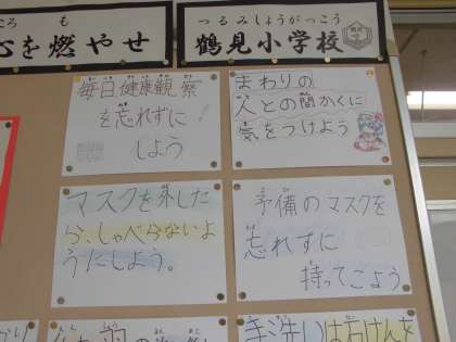 保健室横の掲示板にまとめて貼ると、すごい迫力です。