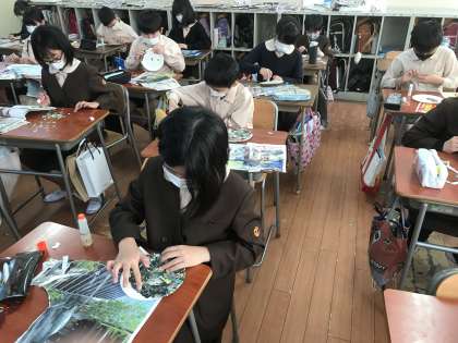 5年生では、作品展に向けて、立体作品に取り組んでいます。